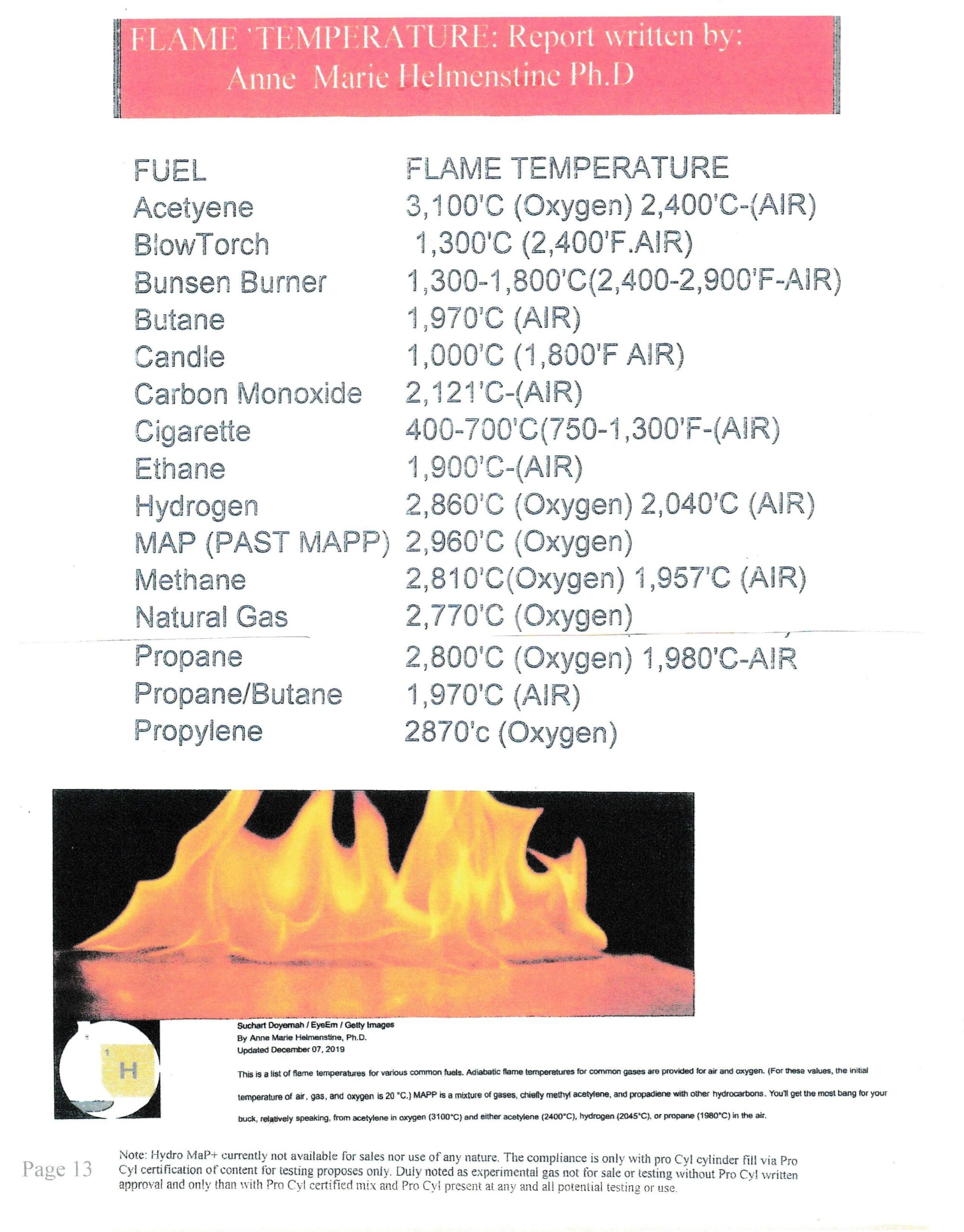 NEW Pro-Cyl FLAME TEMPERATURE: Report written by: Anne Marie Helmenstine Ph.D