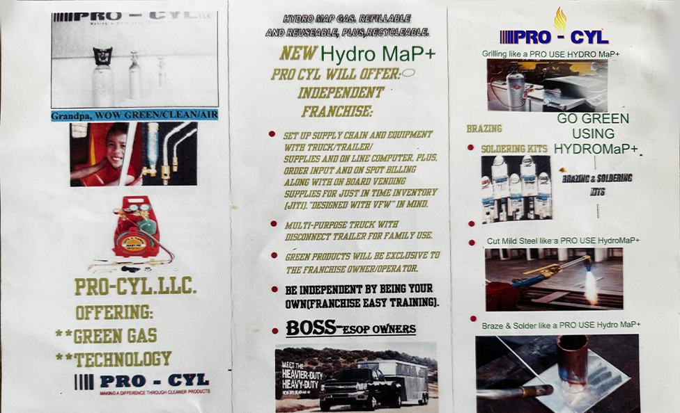 Pro – Cyl is a company offering Green Gas Technology solutions to the Cutting, Brazing, and Heating Industry with environmentally friendly products that can reduce the amount of contaminants in the Land, Water and Air. Pro-Cyl works hand in hand with companies to be solution driven in GREEN GAS TECHNOLOGY with products such as: Air Fuel Torches designed for longer tip life, HYDRO MAP + a new green gas and lighter cylinders for easier and safer gas dispensing that is refillable.